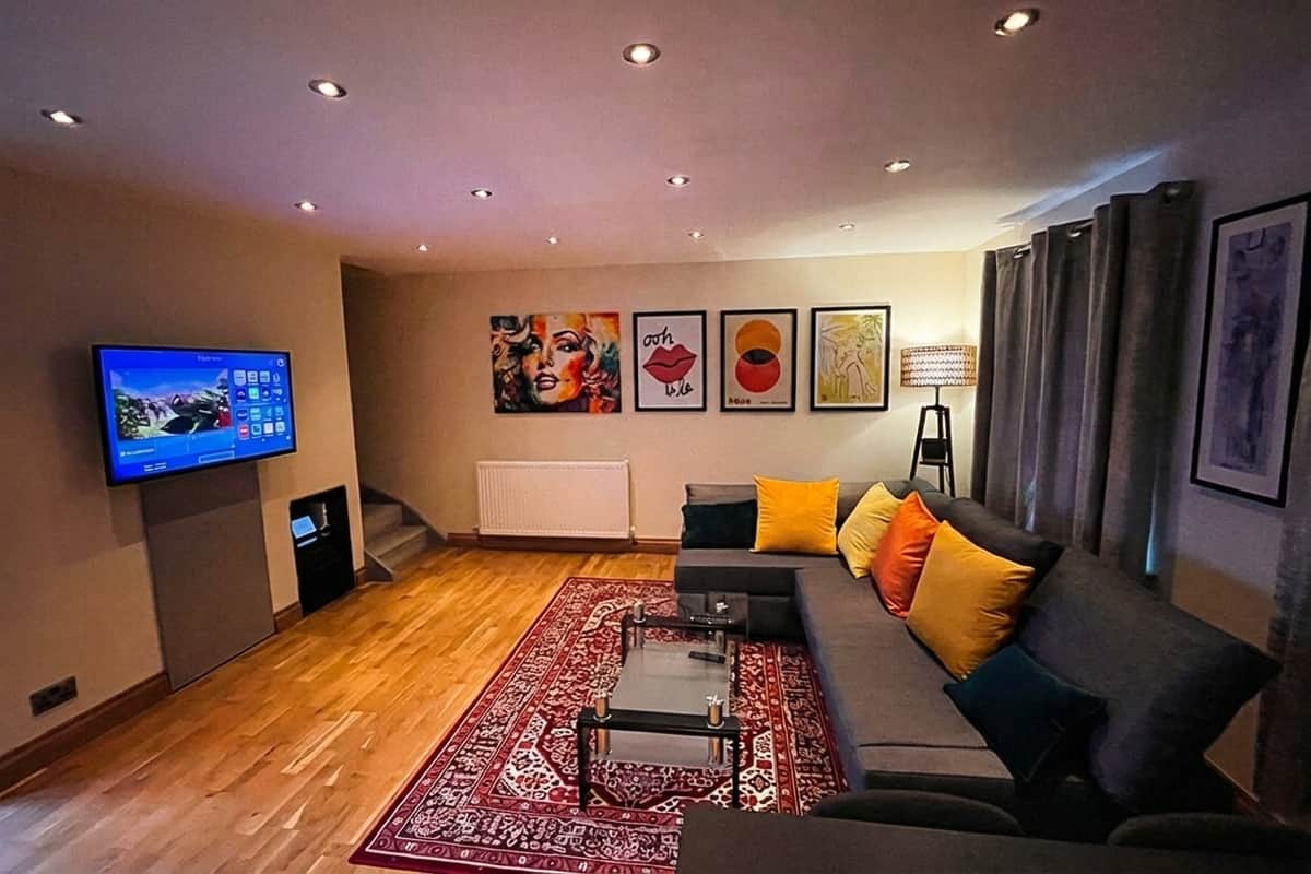 Arrive to secure, CCTV-monitored gated parking for up to three vehicles, and step inside to discover a bright, comfortable space filled with bold artwork and modern touches.